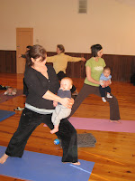 I teach a Mom and Baby Yoga class once a week to a group of moms and their babies. When I first started teaching the class, most of the children were very wee ones who could hardly sit up. Back then the classes were calm and delightful- a real treat for moms in the midst of busy days spent caring for tiny babes with so many moment-to-moment needs. We’d wear the babies as we stretched, using them as weights to help us strengthen. We’d enjoy nice, long relaxations at the end; most of the babies would fall asleep nestled against mom on the yoga mat.
